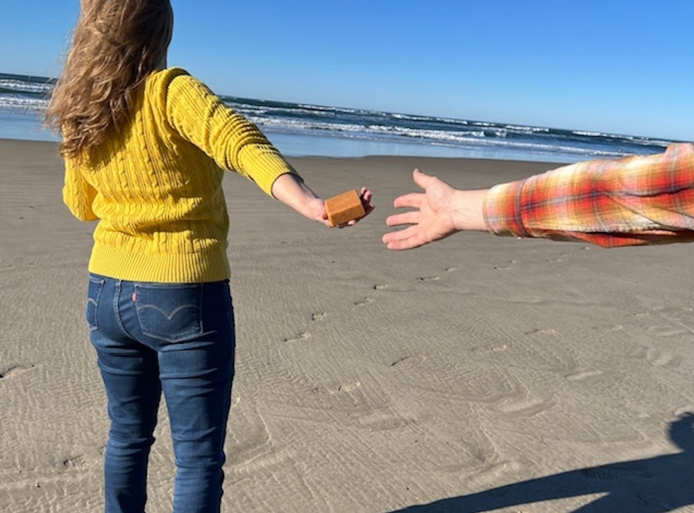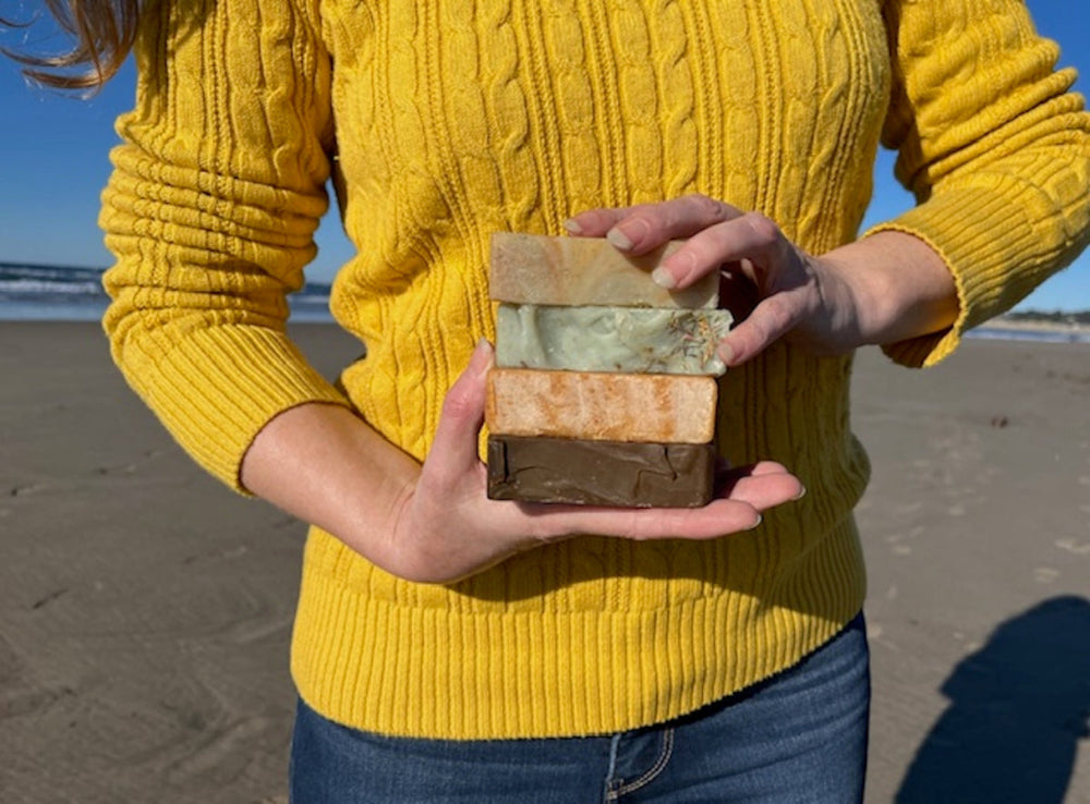 The ocean ties me to place and home. Having lived on the Oregon coast for ten years and grown up on the Atlantic coast, I now live near by and have the opportunity to be there part time year round. Every bar of soap is made with ocean water from Newport, to Seal Rock, Oregon. Another word for using ocean water to make soap is Soleseife (sole = brine, seife = soap) pronounced zo-luh-zigh-fuh. Soleseife is the german word for brine soap.